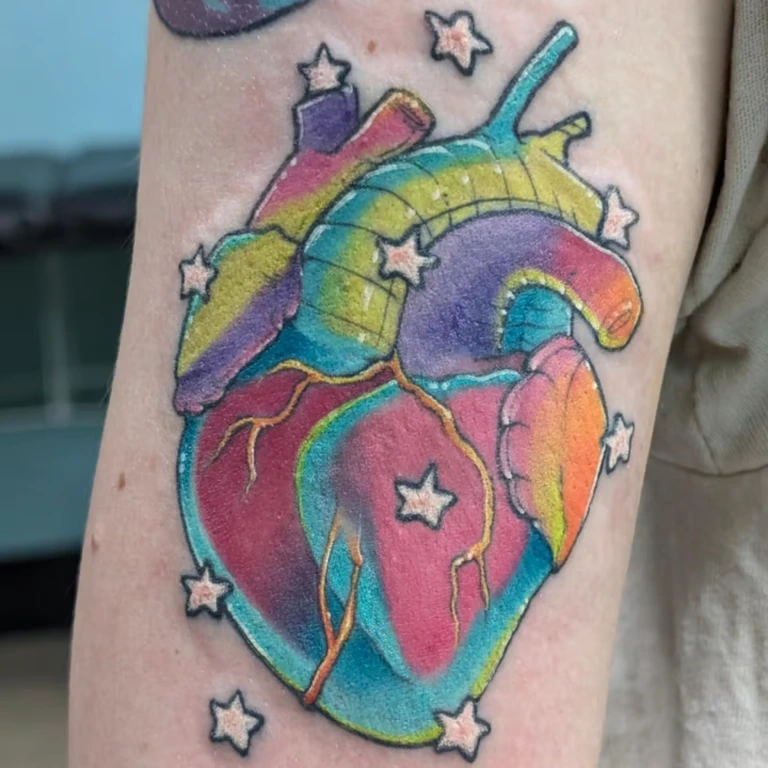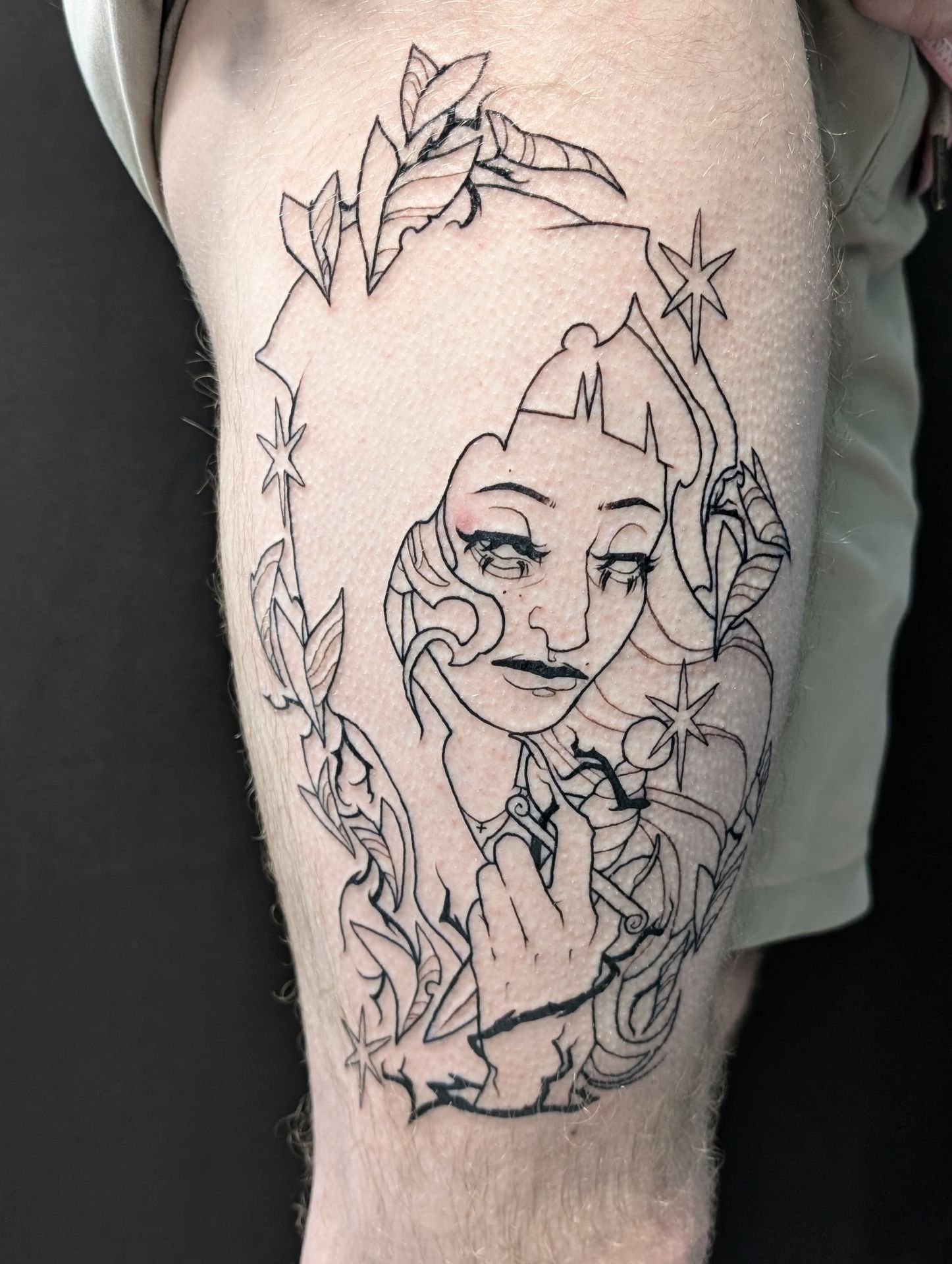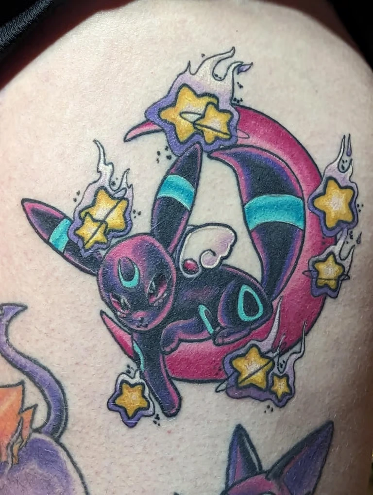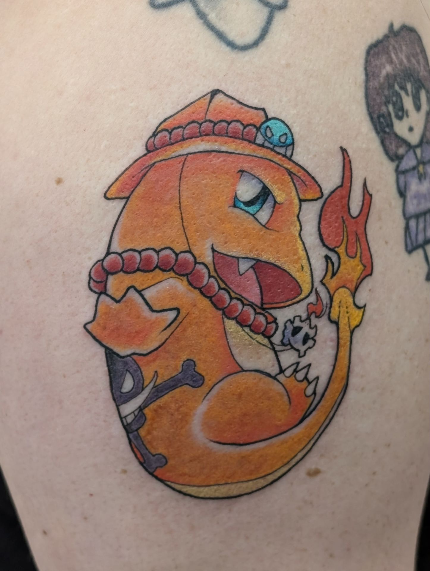 Colly Gutz specializes in bold, expressive color tattooing inspired by anime, gaming, pop culture, and alternative art. Their work features vibrant palettes, dynamic character energy, and clean illustrative linework that brings every tattoo to life. From cute and whimsical creatures to edgy fan-favorites with attitude, Colly’s style captures personality and nostalgia in a way that feels unforgettable on skin.