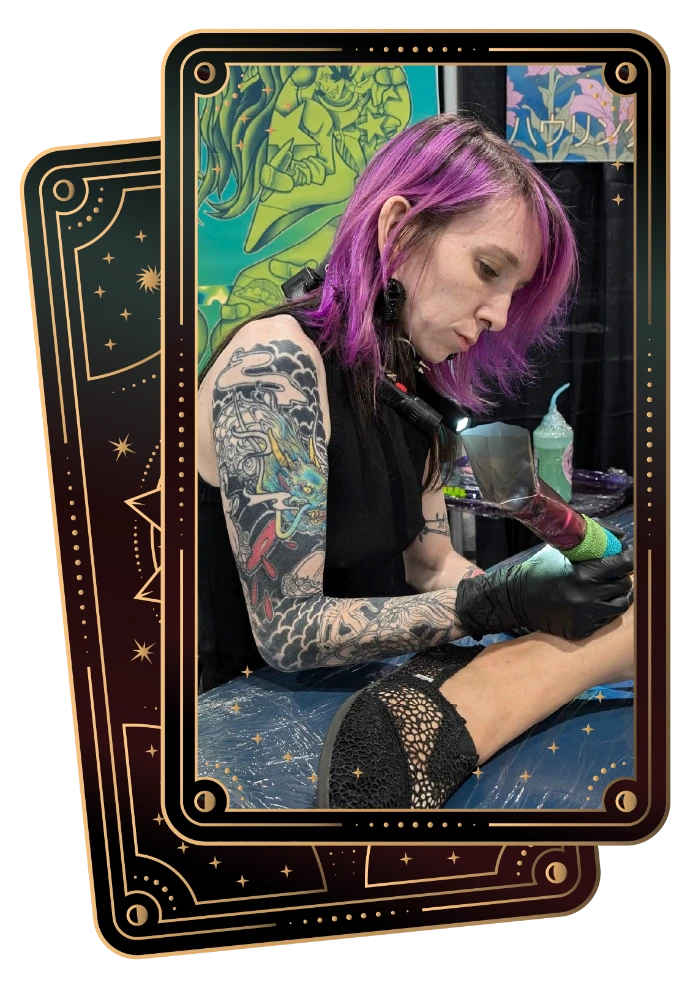 As the owner of Dawnbringer Tattoo, they are dedicated to building a studio centered on inclusivity, creativity, and client comfort. Colly supports each person’s individuality, ensuring every appointment feels like a collaboration and every finished tattoo reflects the wearer’s identity.