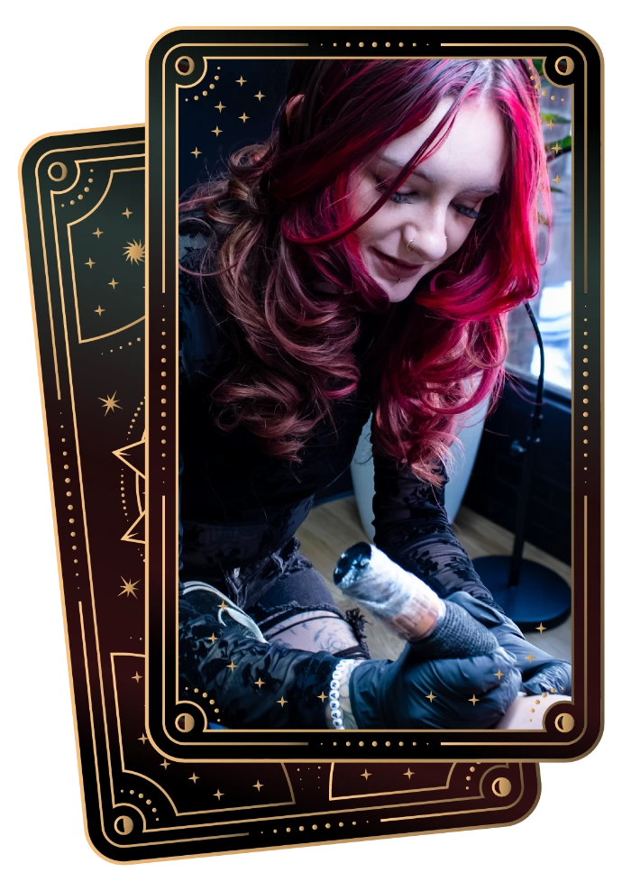 She brings a calm and thoughtful approach to every project, ensuring clients feel seen, heard, and closely involved in the design process. Her tattoos are crafted to be elegant, timeless, and genuinely cherished.