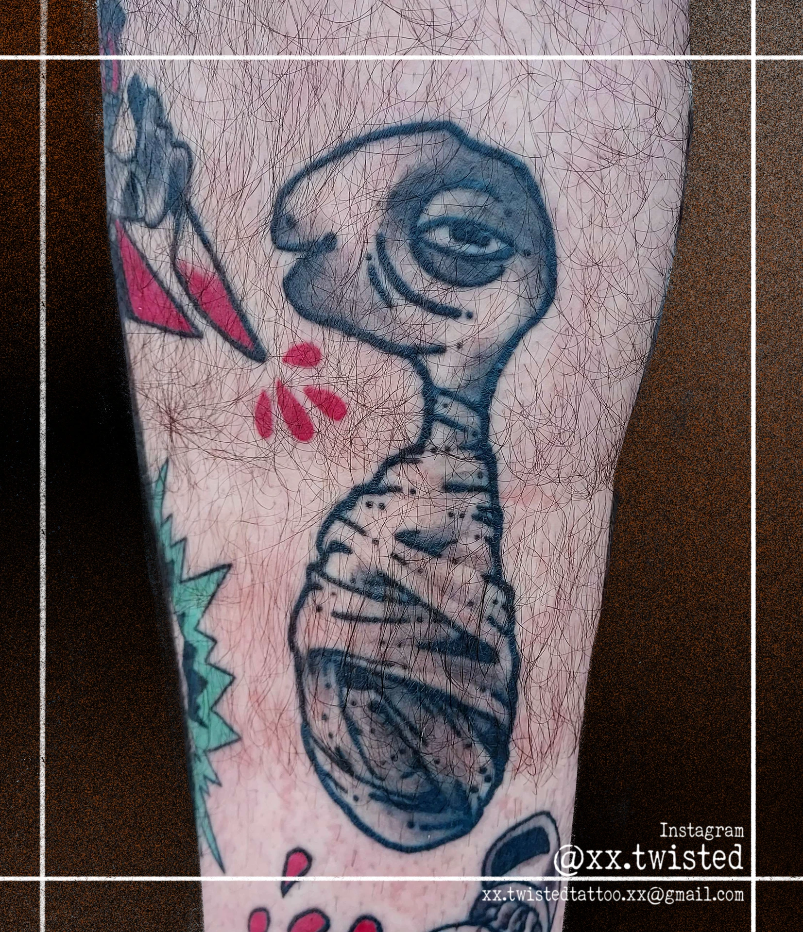 Cameron specializes in bold, character-driven tattooing with a vibrant cartoon sensibility. His work blends clean graphic linework, bright color palettes, and playful surreal elements — from quirky creatures and sci-fi icons to expressive skulls and fantasy motifs. Every piece is designed to pop with personality and feel like living art on skin.